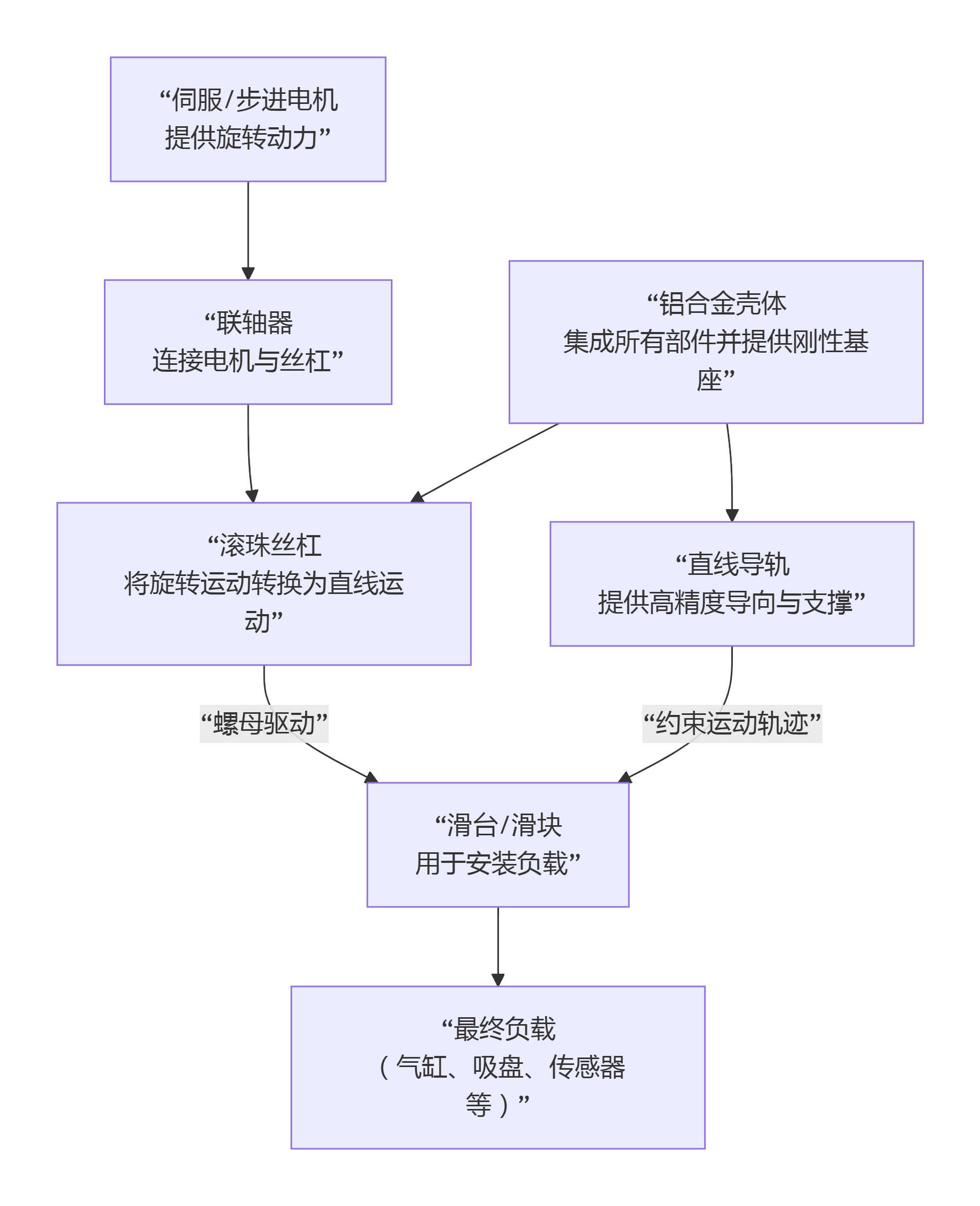 什么是KK模组滑台?KK模组是一种集成化的直线模组,其名称通常源于厂商的型号命名(如“KK60”可能指滑台宽度为60mm)。它本质上是一个将滚珠丝杠传动 与直线导轨导向 精密集成在一个紧凑型铝制壳体内的标准化模块。 其核心设计哲学是:即插即用,简化设计。用户无需再分别购买丝杠、导轨、轴承座、滑块和基座,然后进行复杂的对齐和安装。KK模组提供了一个已经完美组装并调试好的整体单元。 为了更直观地理解其内部结构和工作原理,我们可以通过下图查看其核心构成与动力传递路径: