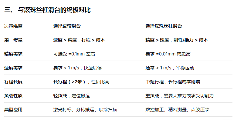 总结皮带滑台是现代自动化设备追求“效率最大化”和“成本最优化”的智慧结晶。 它并非在所有方面都顶尖,但在其专精的高速、长行程、轻负载赛道上,它提供了无与伦比的性能价格比。理解其 “为速度与距离而生” 的本质,就能在纷繁的自动化方案中,做出最精准、最经济的技术选择。 |
