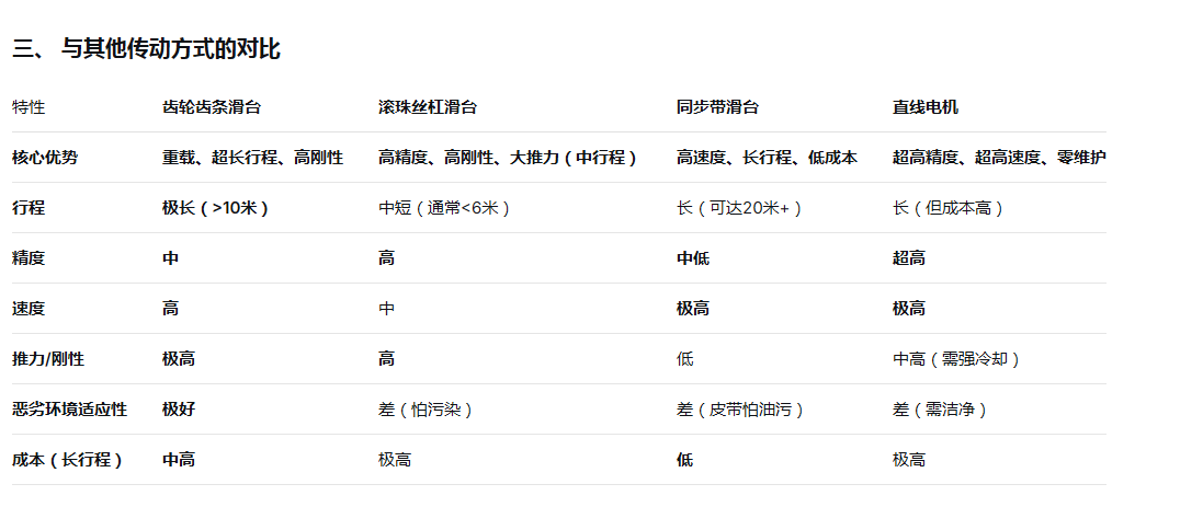 齿轮齿条滑台是 “大、重、长” 应用的绝对统治者: