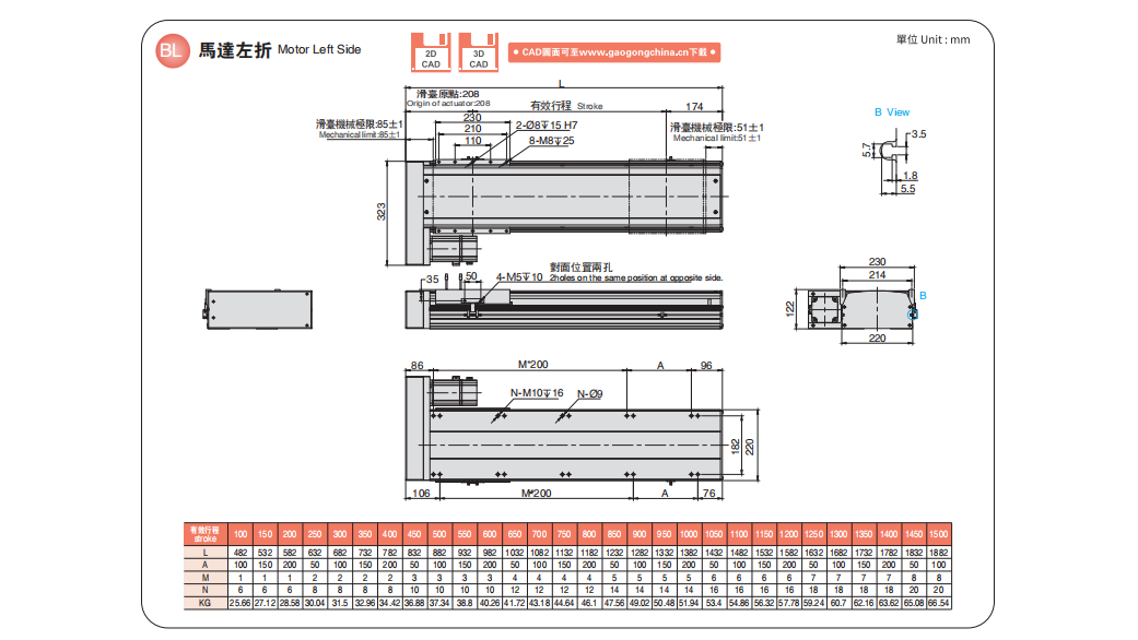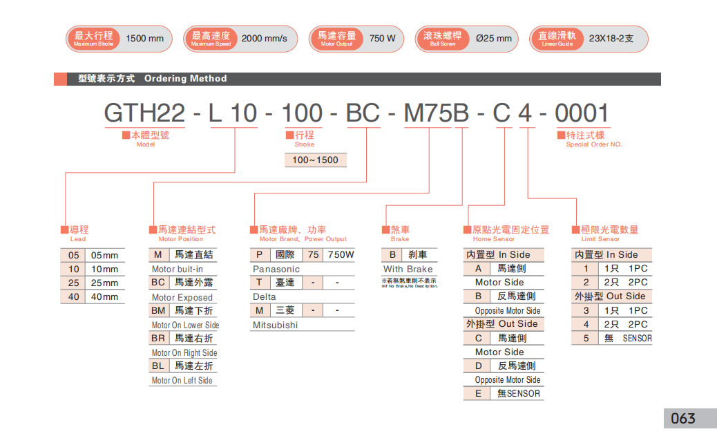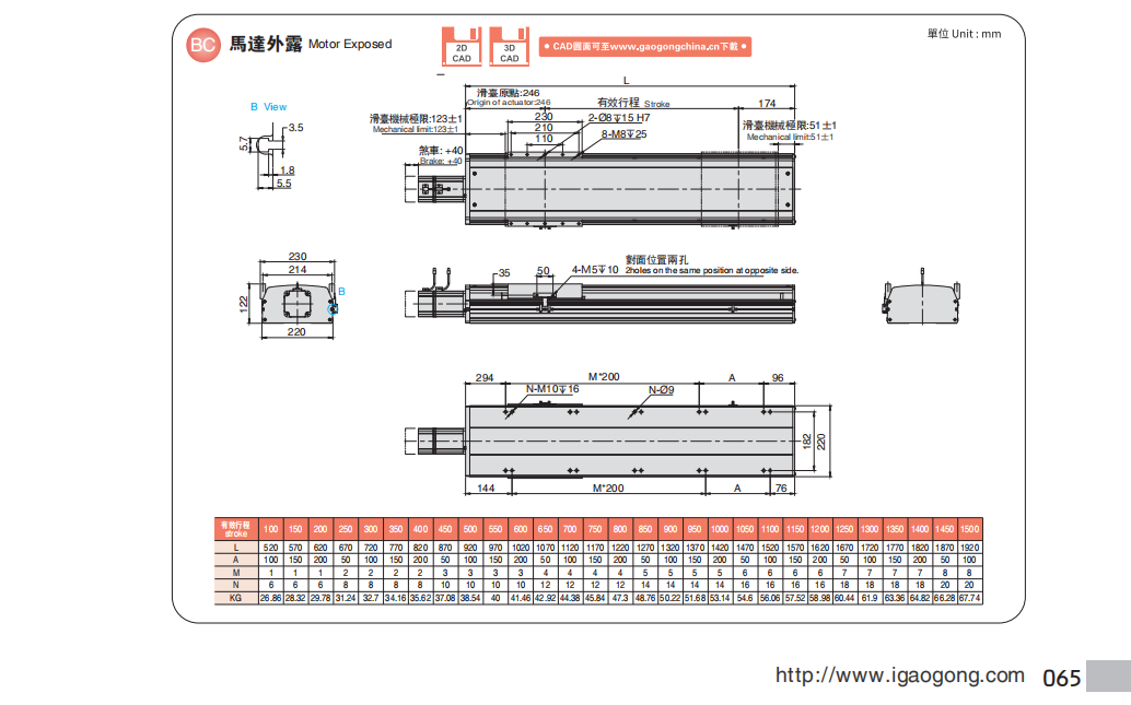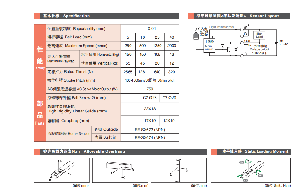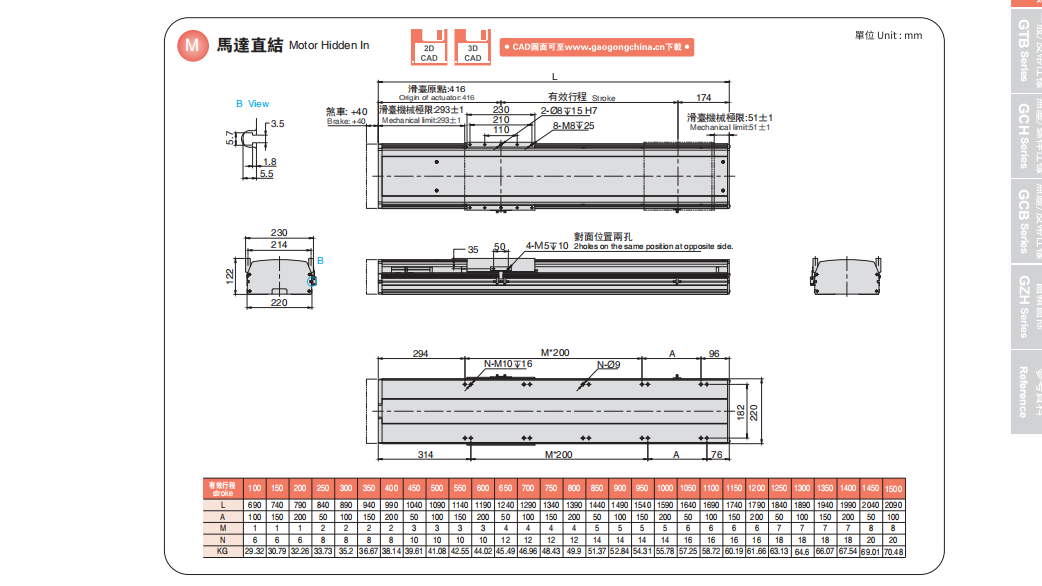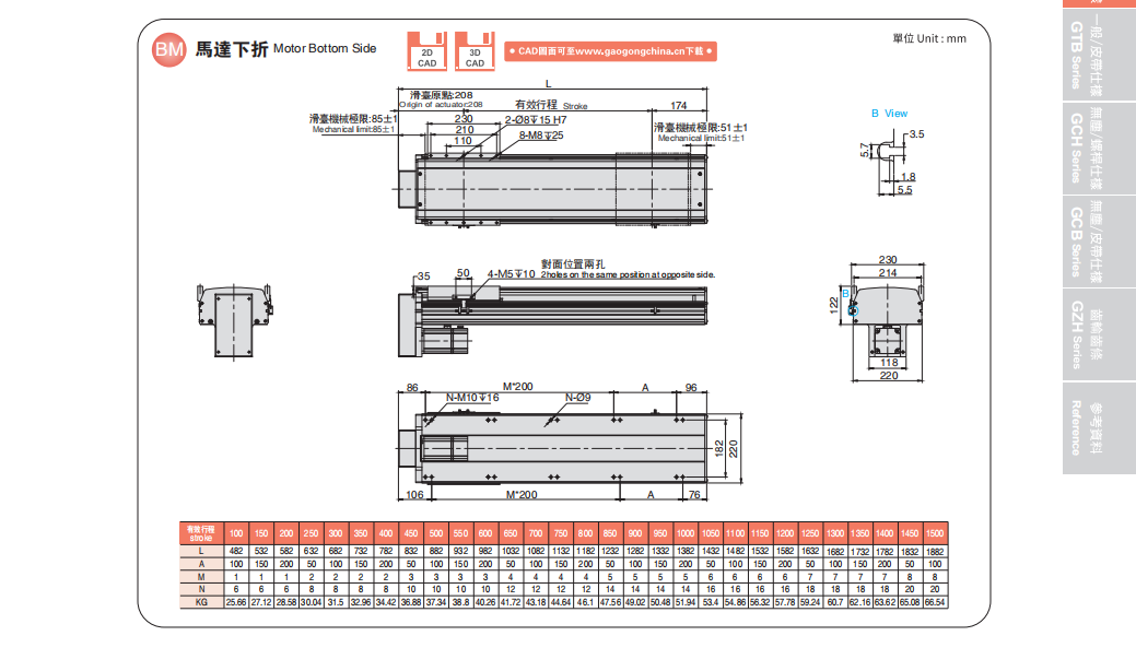 同步带型直线模组基本组成由: 皮带、直线导轨、铝型材、联轴器、马达、光电开关等。