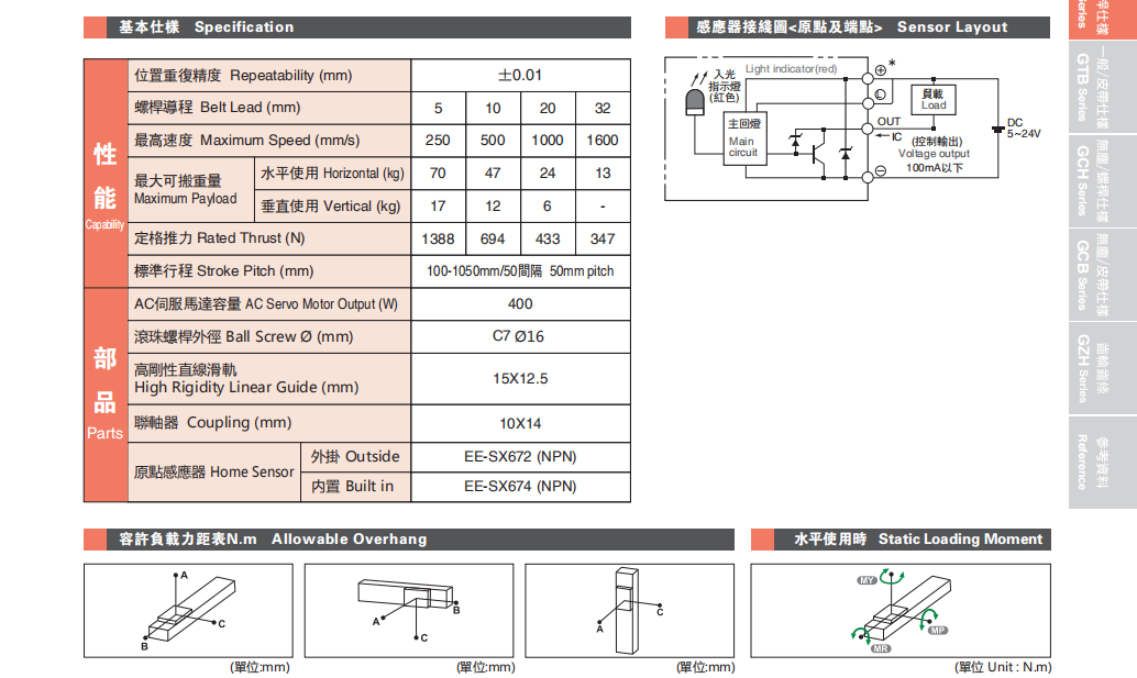 主要组成由: 滚珠丝杆、直线导轨、铝合金型材、滚珠丝杆支撑座、联轴器、马达、光电开关等。