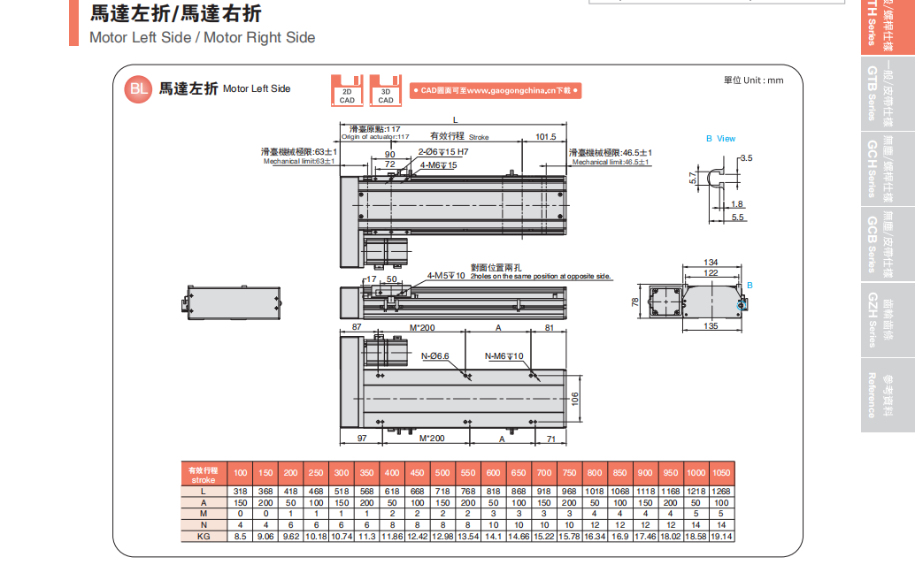 精度取决于其中的皮带质量和组合中的加工过程,动力输入的控制对其精度同时会产生影响,精度一般高于0.1mm因此对于不同的生产工艺要求,采用各自需要的同步带型,可以控制生产成本。可以根据不同的负载需要选择增加刚性导轨来提高刚性。不同规格负载上限不同。 通常经过特定的设计,在其一侧可以控制皮带运动的松紧,方便设备在生产过程中的调试,同步带型的松紧控制均在左右边,一般采用螺丝控制